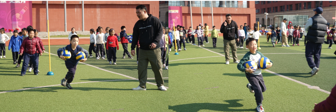 一、二年级的同学们化身 “运动小达人”,在“一钻到底” “翻物接力跑”等项目中努力拼搏。尤其是“夹球迎面接力赛”,真是紧张又有趣,大家小心翼翼地夹着足球,生怕掉落却又不甘落后,现场笑声与加油声此起彼伏。